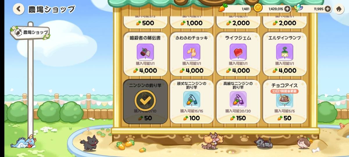 - 農場の金は月更新やから交換せんと損してるぞ