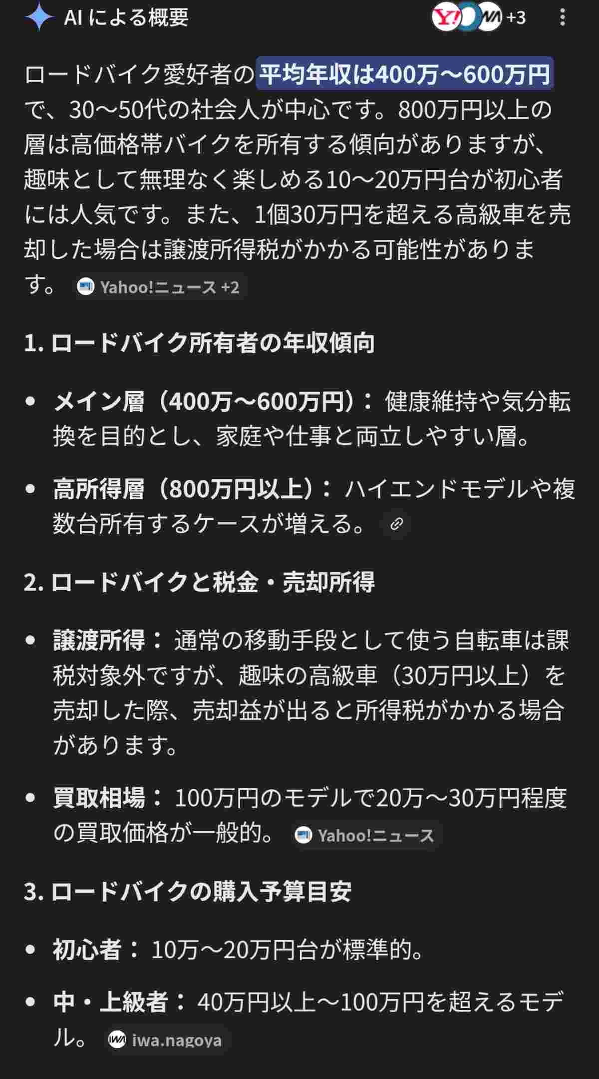 そら100万とかのロードバイクもあるやろけどそれはトップの話。そんな乗ってる奴少ない - 7 : 2026/03/14(土) 21:15:09.376 ID:vnZRHx6wr