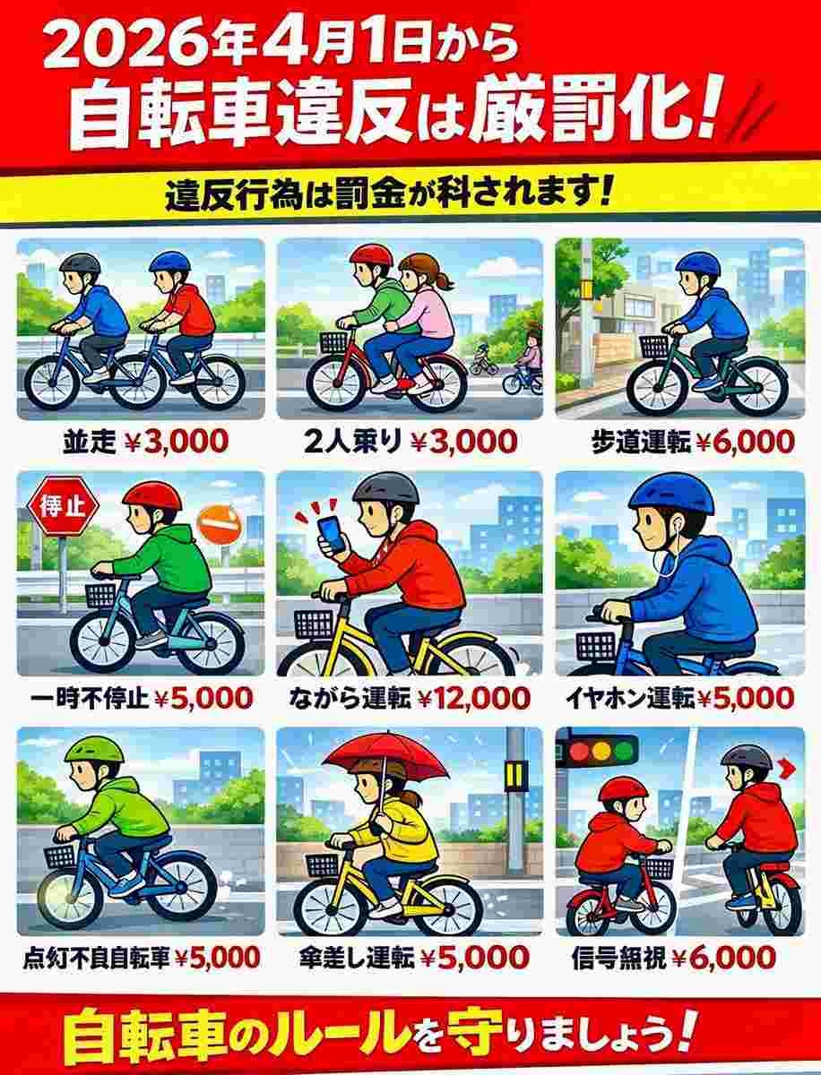 【画像】4月からはじまる自転車の罰金一覧がこちらwww