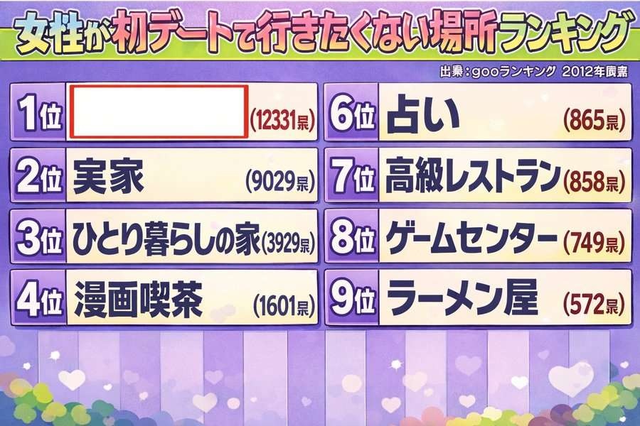 女性が初デートで行きたくないランキング1位www