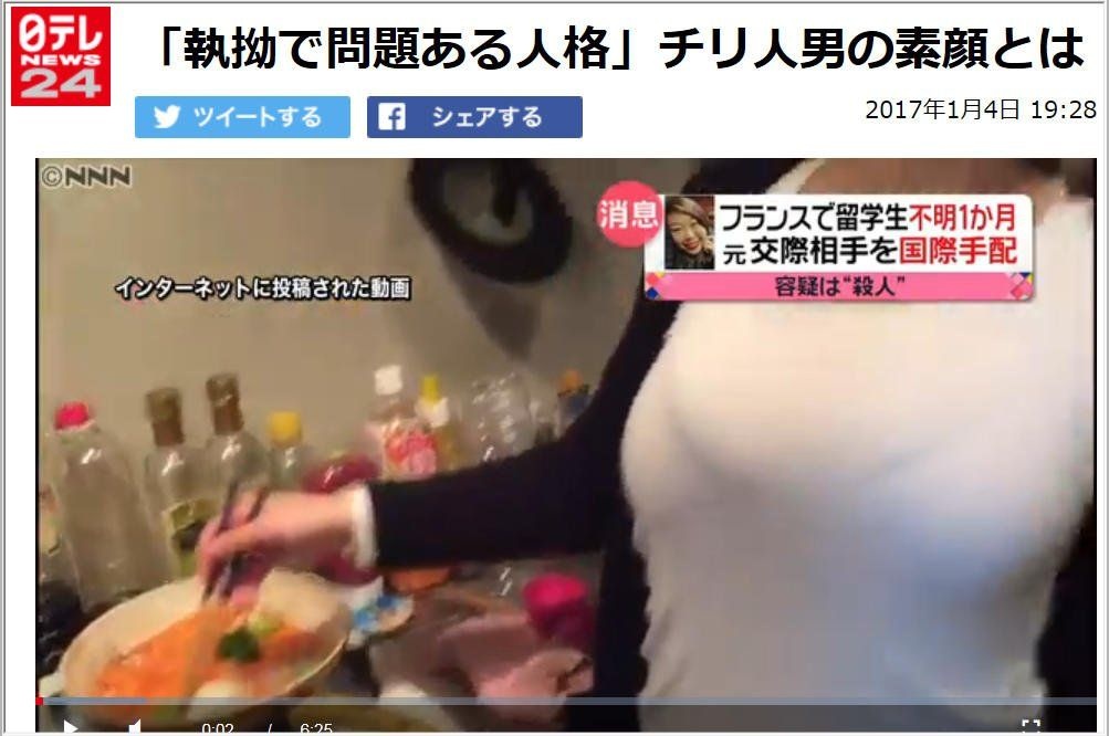 しかし、日本からチリに戻ったニコラ・セペダは彼女をネット監視し、自分の恋人が自由を謳歌していることを許し難く思っていた。2年前に日本で筑波大学に滞在した時に彼女と出会い、恋仲になった。一緒に数ヶ月暮らし、チリに連れて帰り両親にも引き会わせた。