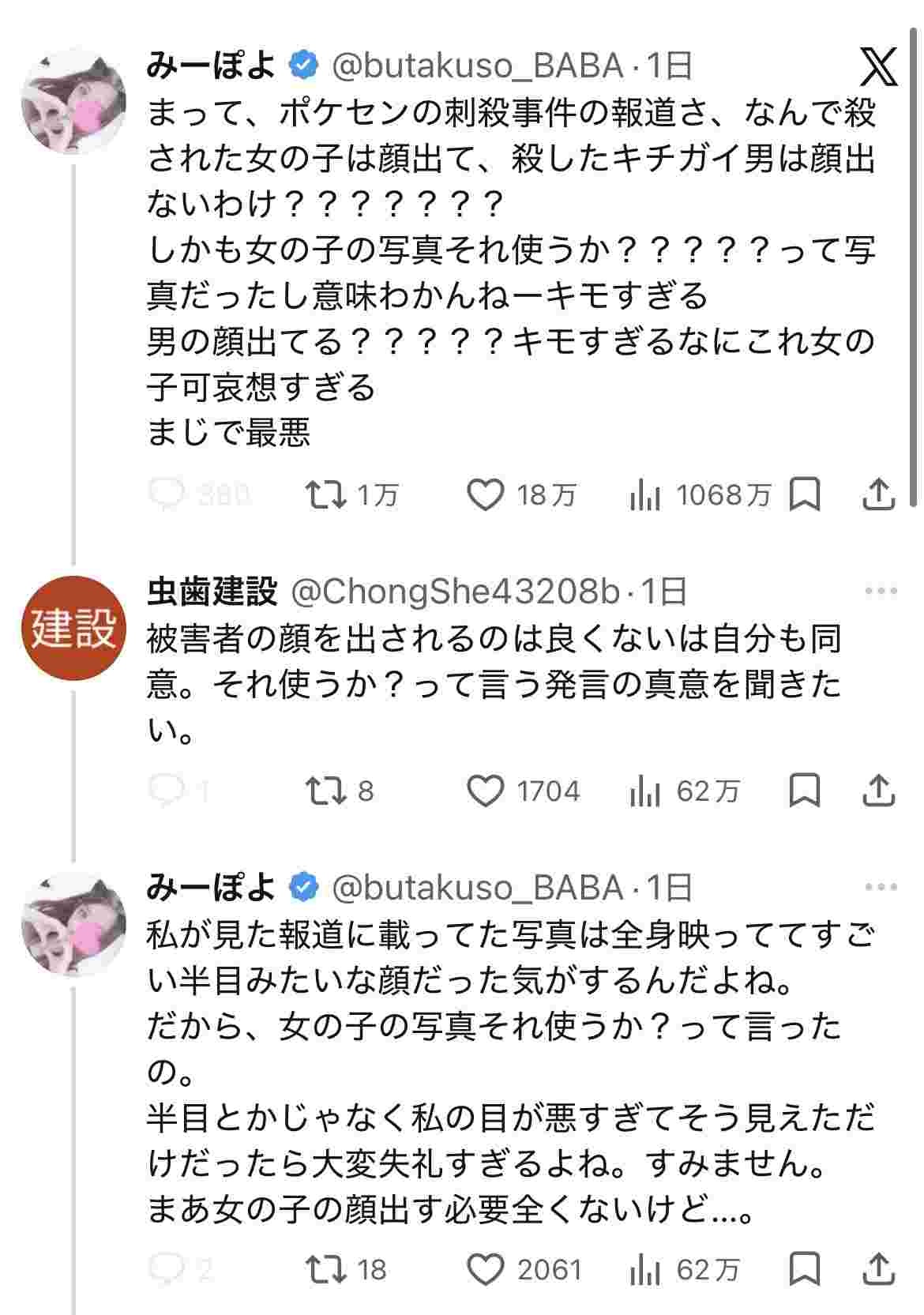 出すなら加害者の写真なのにすぐ出てくるの被害者の写真よな