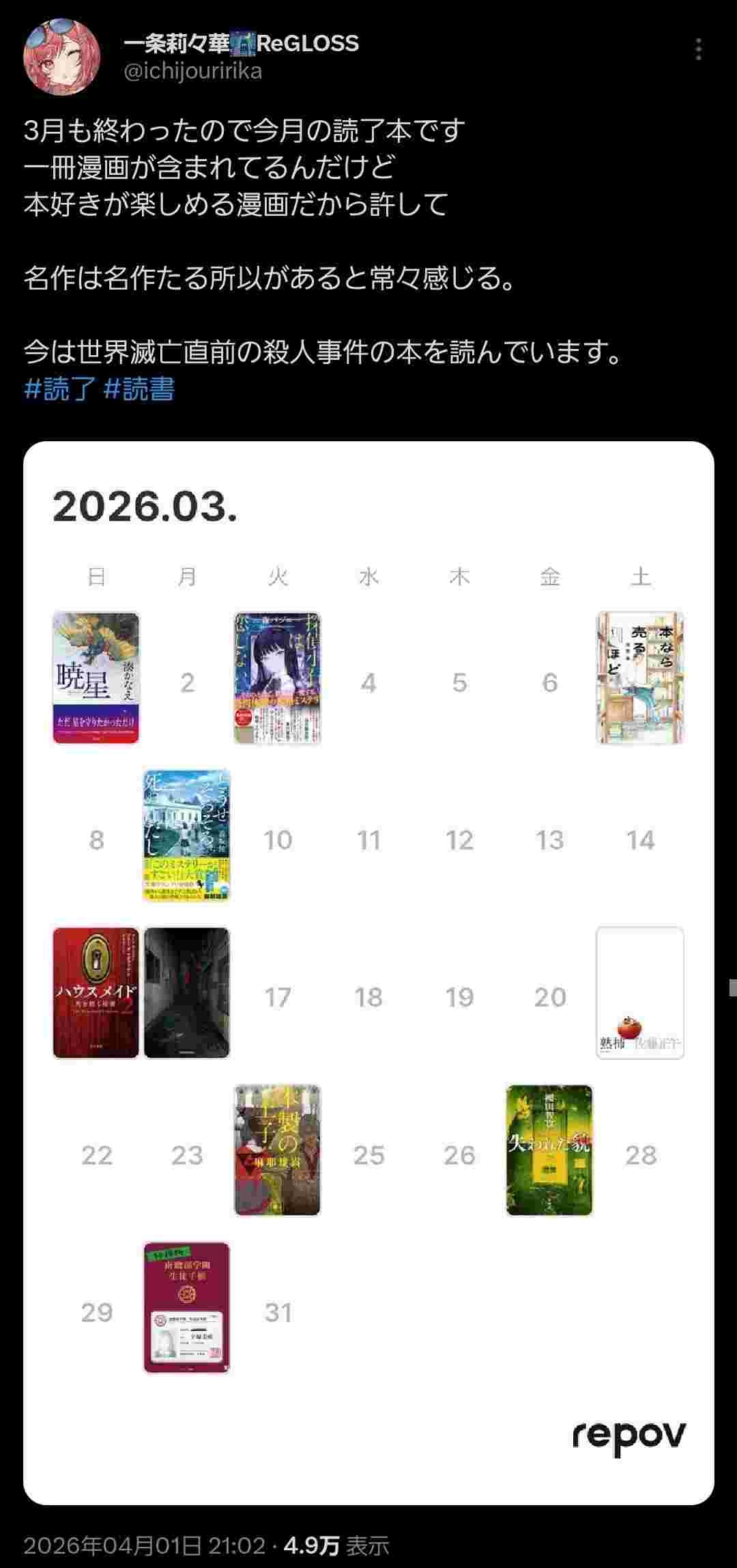 Vtuber「これが3月に読了した本です」オタクのレベルを超えてると話題にwww