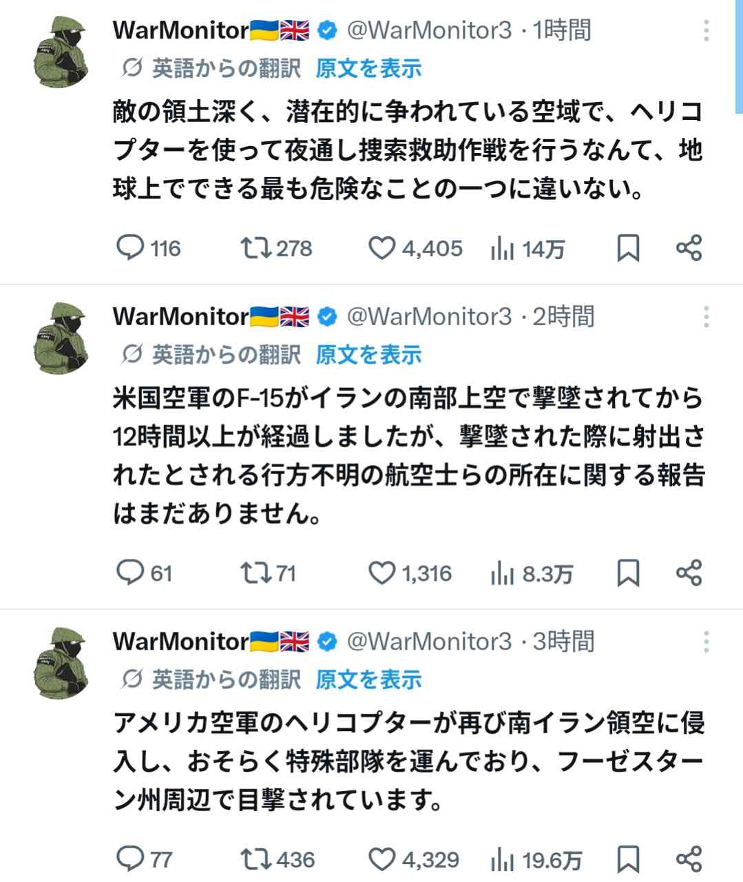 現実はパイロットは敵地に着陸したから、救出のためにヘリ等を出して対空出されて帰るなど二次被害が出そうな雰囲気 - 3 : 2026/04/04(土) 10:28:29.175 ID:tQL9Dkdt4
