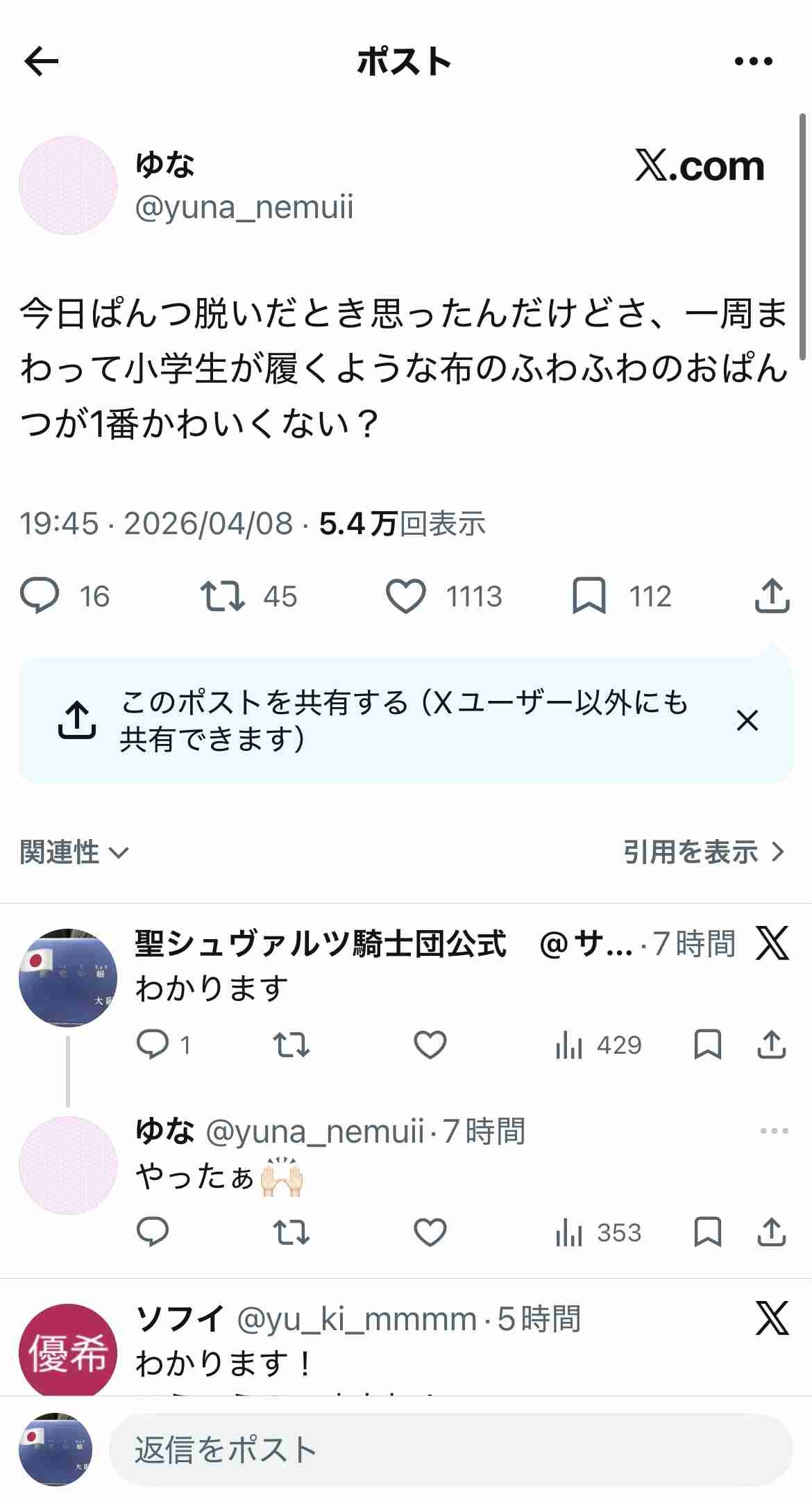 ゆなちゃんはリプ返してくれたで - 39 : 2026/04/10(金) 00:30:07.803 ID:YDZV/AYCU