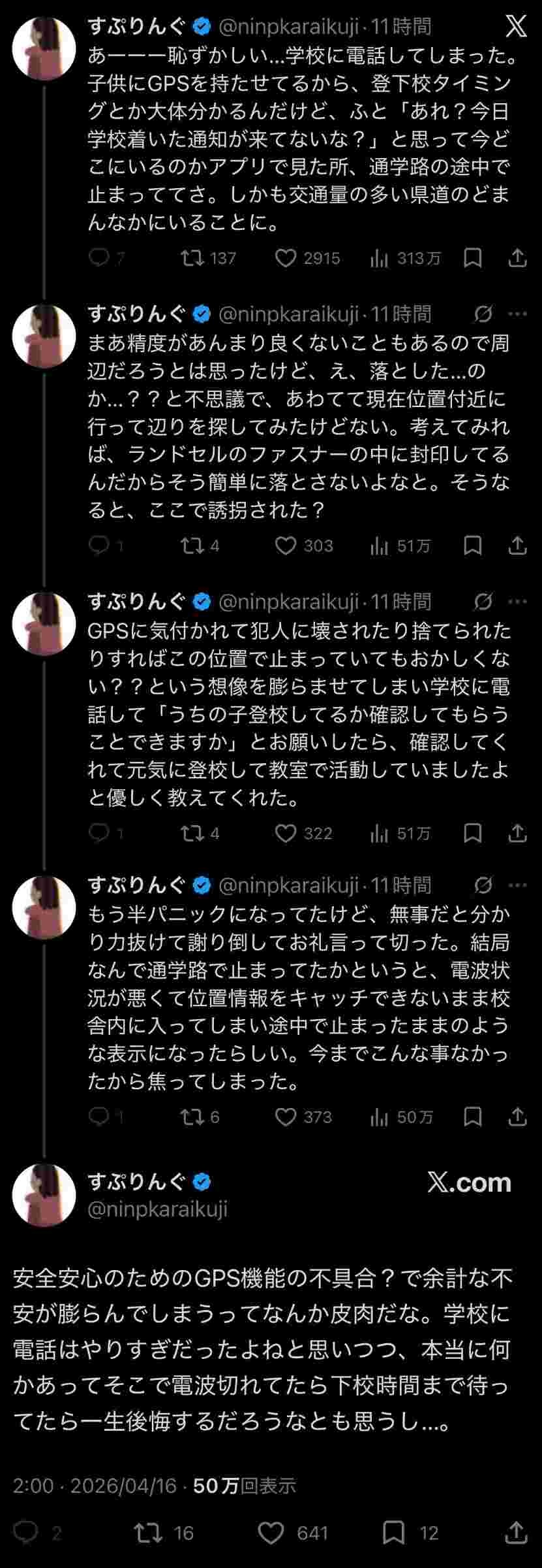- まともなgpsならいいけど安物とかairtagみたいなのでその都度電話かけてくる親いたら教員ぶっ倒れるだろうな