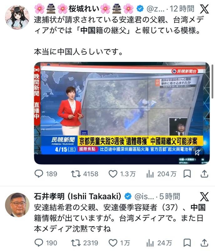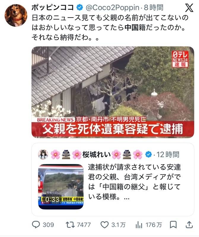 - 冷静に考えて台湾メディアが日本で逮捕された奴の国籍知れるわけないだろ