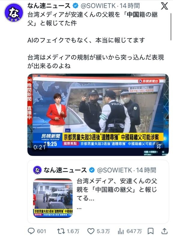 - 台湾のテレビメディアはネットの噂レベルの話を事実かのように報道するからかなりヤバいぞ