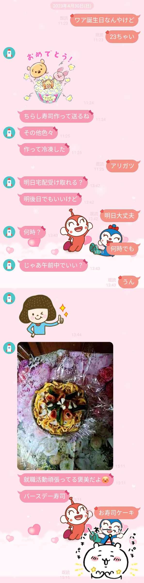 - なお23歳の誕生日には寿司ケーキを送ってくれた模様
