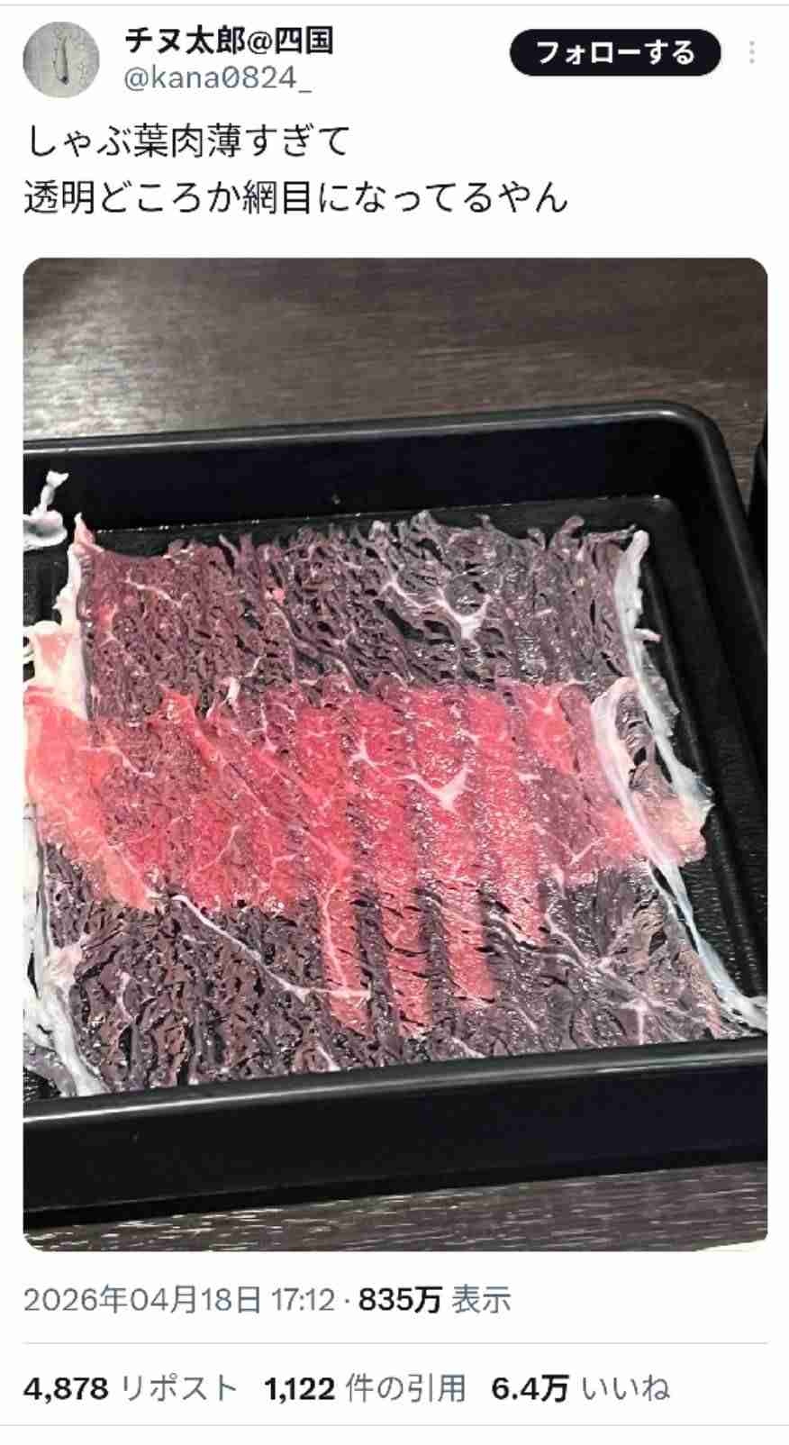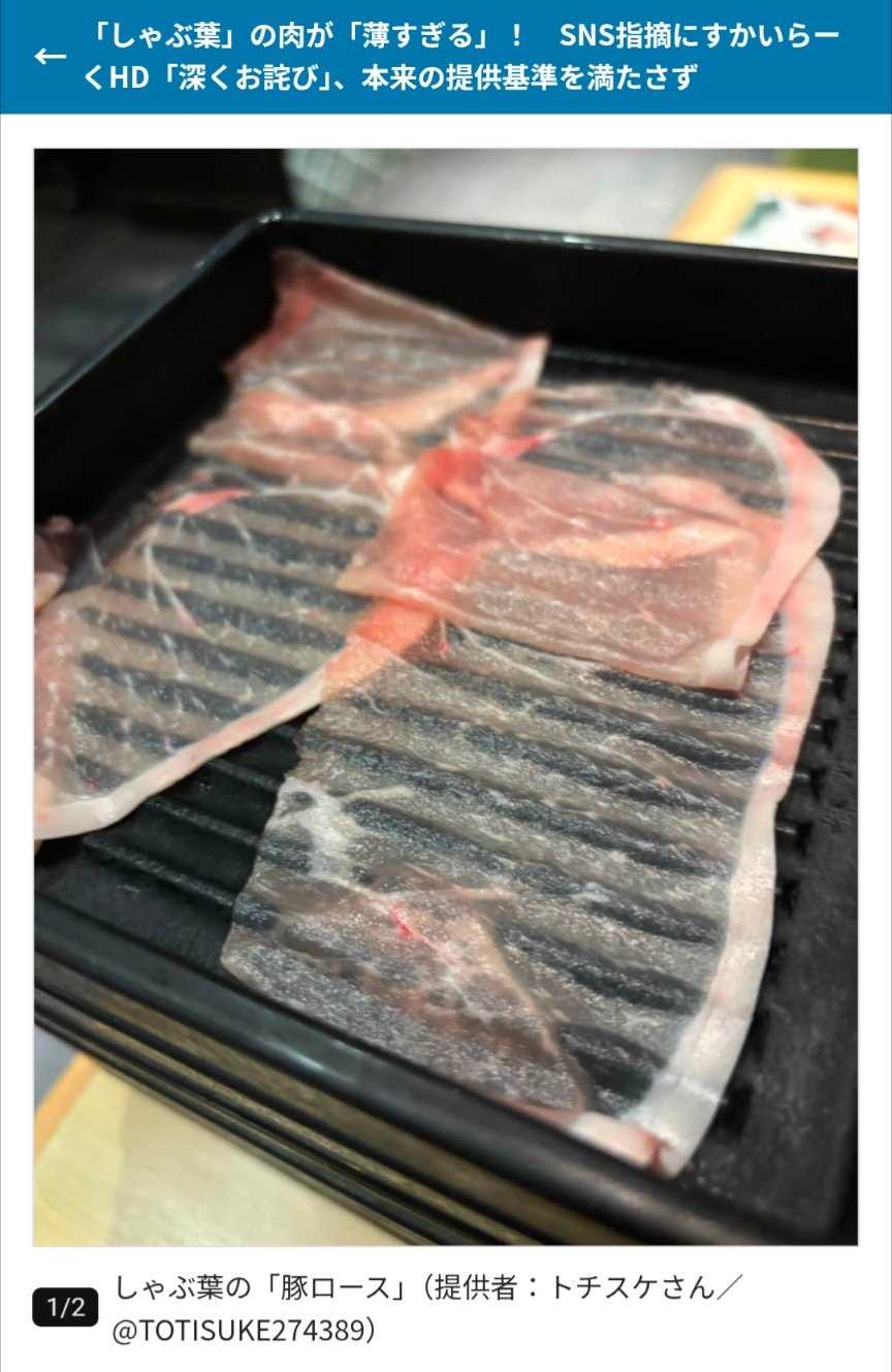 しゃぶ葉、肉が薄すぎて謝罪www