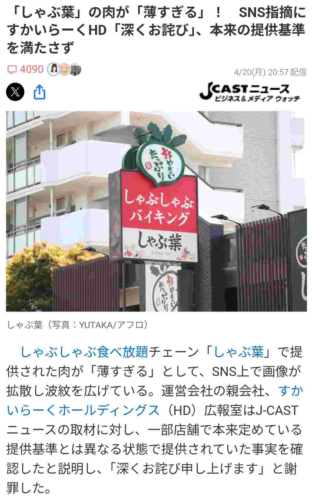 しゃぶしゃぶ葉さん、肉が薄すぎて謝罪してしまう🥩🥩🥩