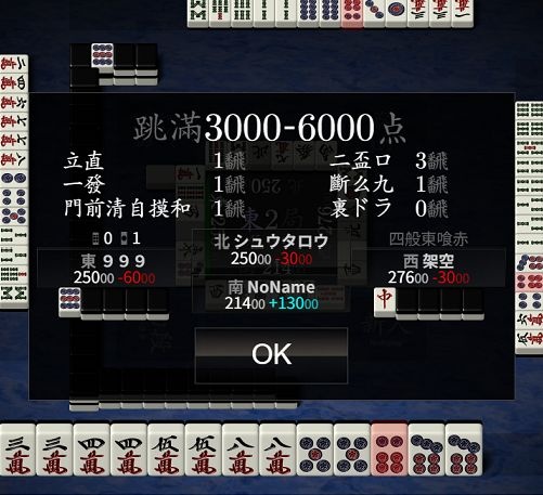 - 二盃口流し満貫槍槓あたりは和了れると嬉しいよね