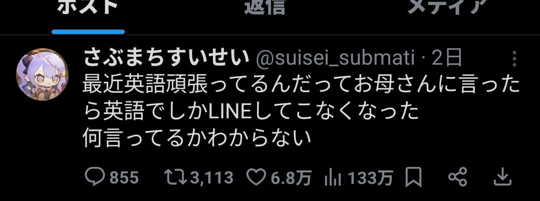星街すいせいさん「最近英語頑張ってるってお母さんに言ったら英語でしかLINE返ってこなくなった」