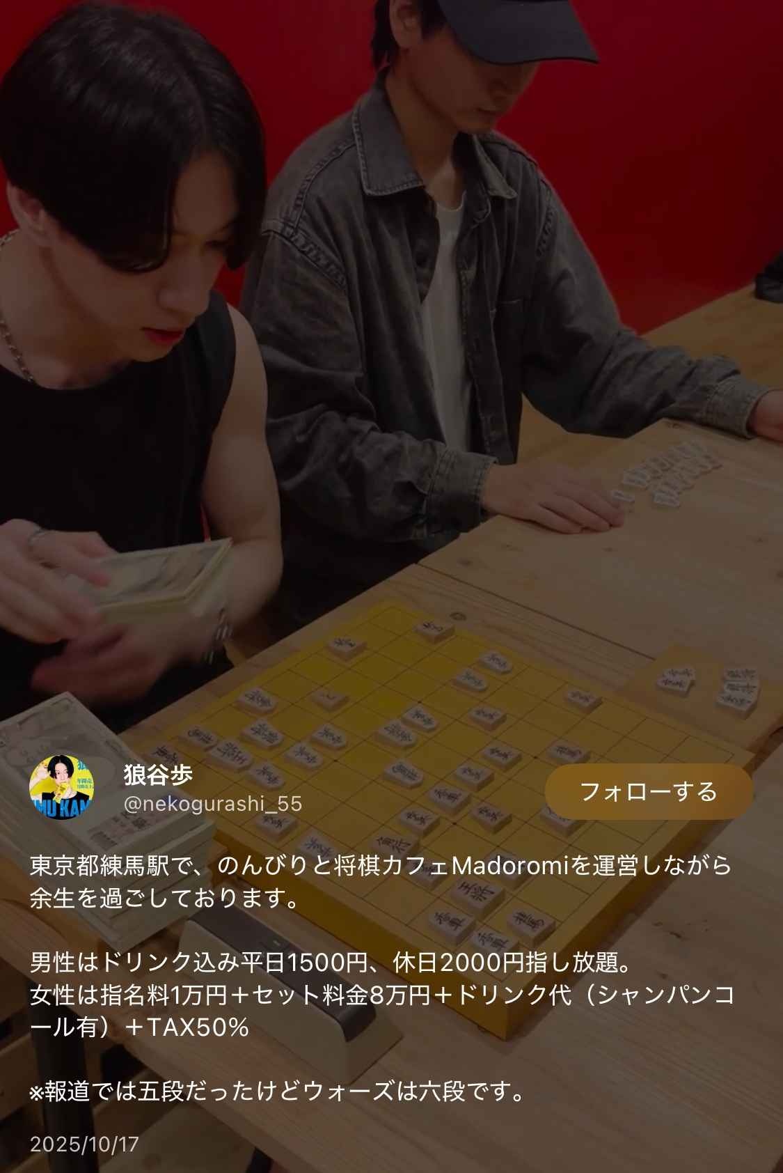 - 頂きりりちゃんの元カレが将棋カフェ経営しとるよな