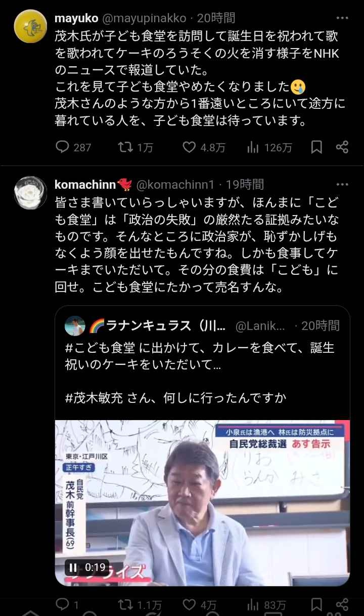 茂木、子ども食堂でケーキを食って炎上する