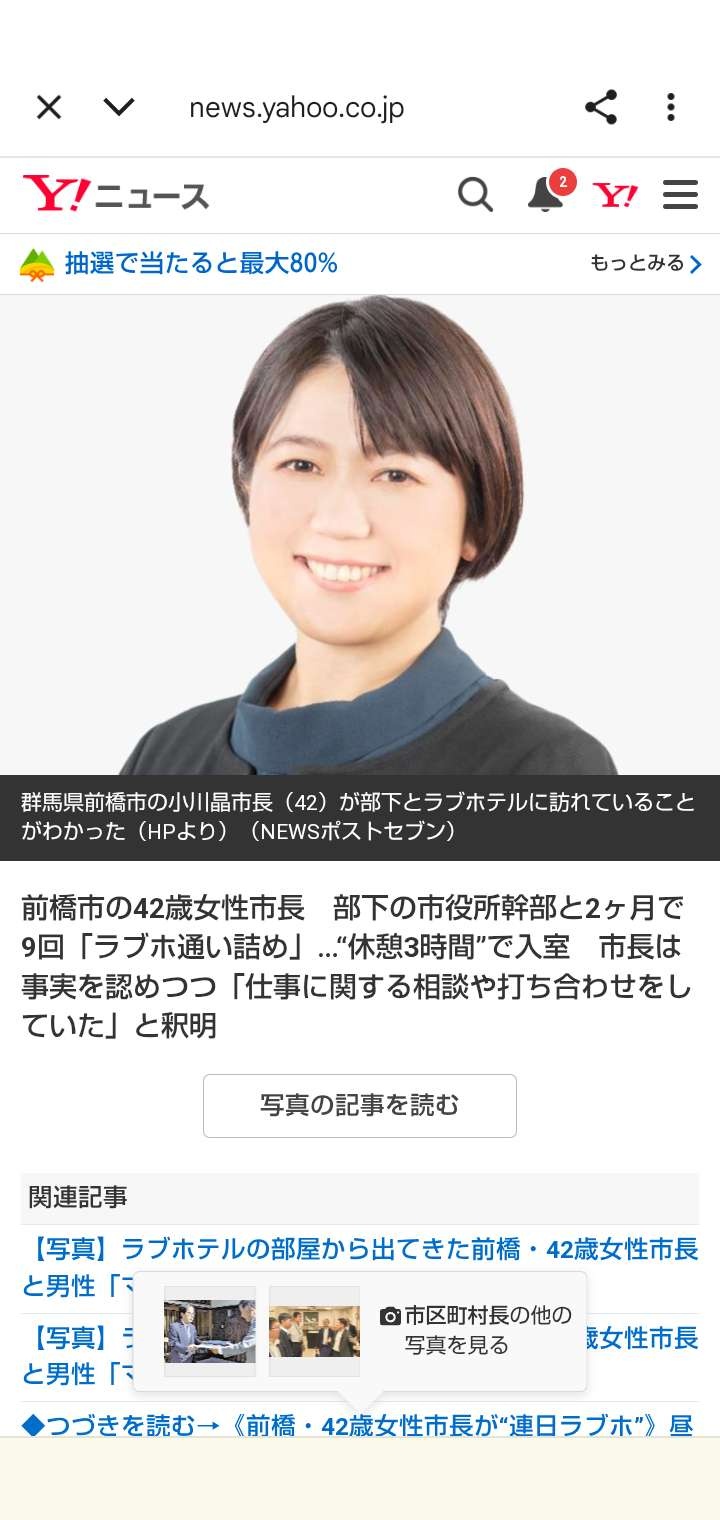 - 群馬県前橋市の小川晶市長(42)が、平日や週末、祝日を問わず、多数回にわたって部下である市役所幹部の男性とラブホテルに通い詰めていたことがNEWSポストセブンの取材でわかった。
