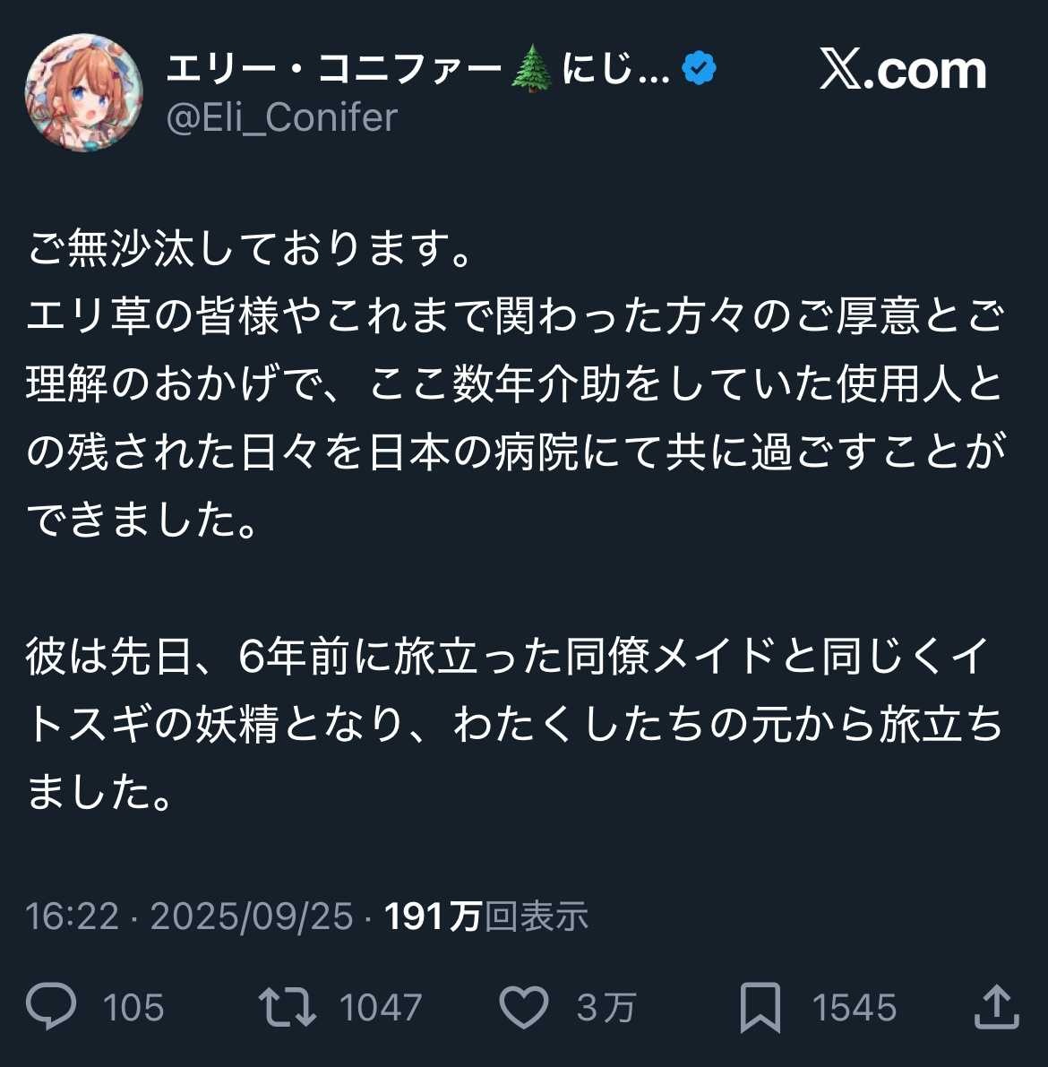 イトスギの妖精=死亡 - 20 : 2025/09/25(木) 19:20:45.267 ID:K5SzylPxR