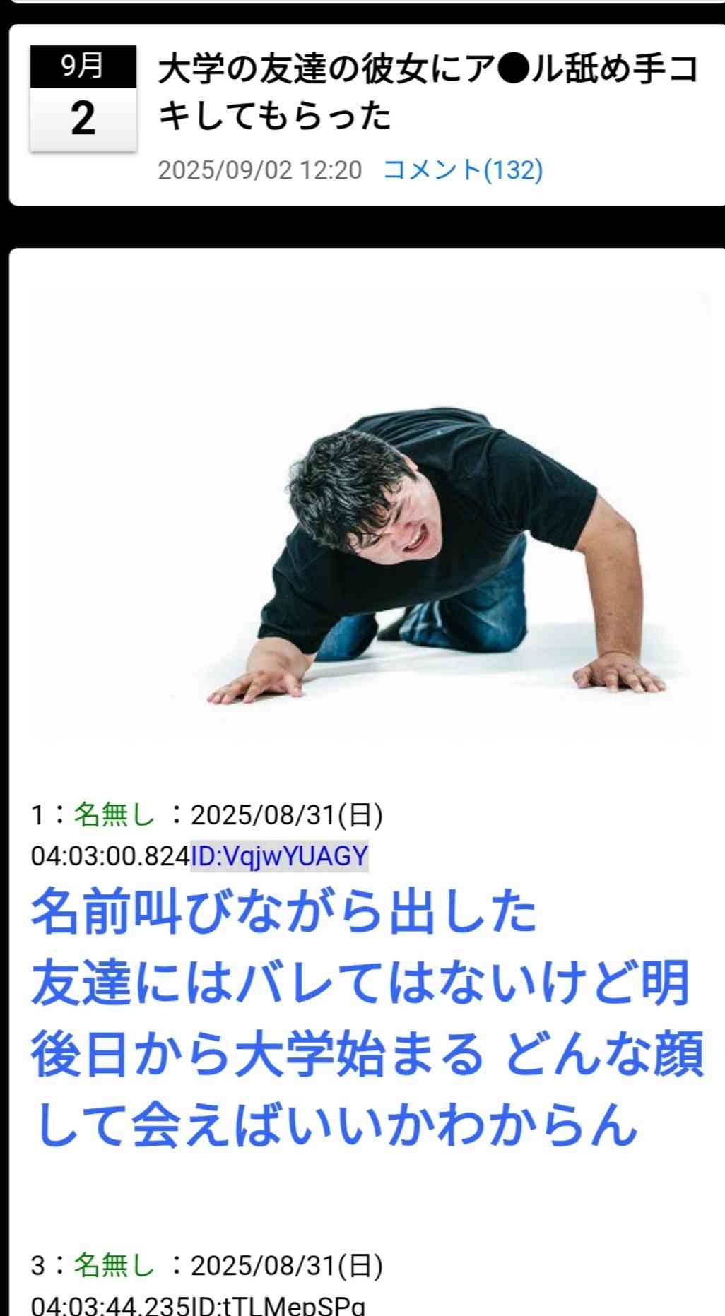 「友達の彼女にアナル舐め手コキしてもらった」ってスレに書き込んだ人おる?無断転載されてるから通報に協力してくれ
