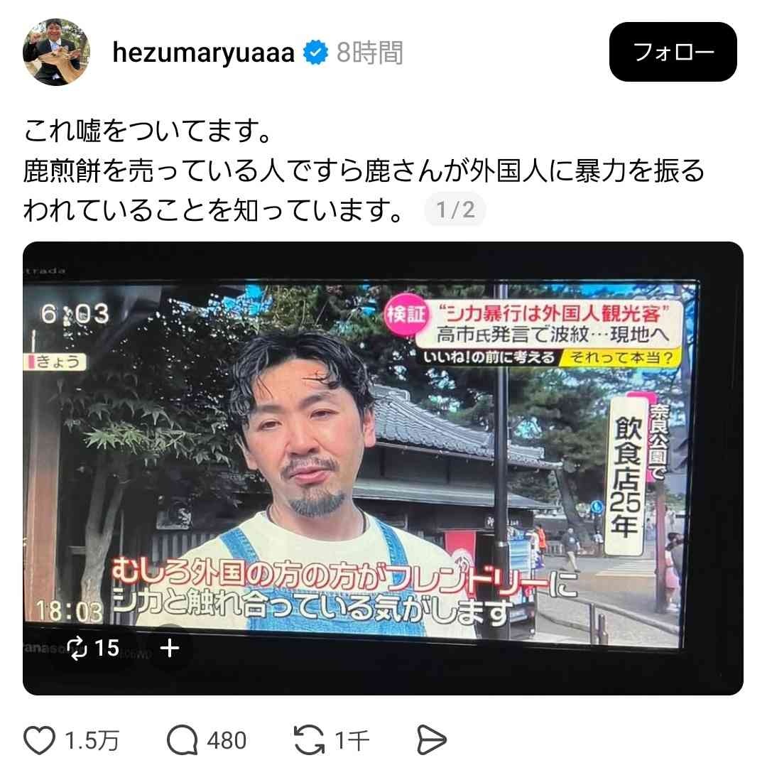 - シカをいじめる外国人はいなかったが日本の店を荒らす日本人は目撃できたな