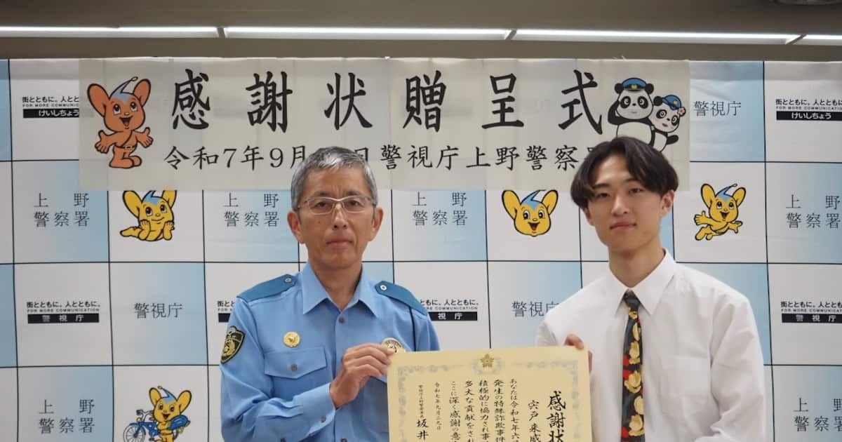 電車で汗だく、周囲見回す女性…通報で詐欺事件解決貢献の男子大学生に感謝状 警視庁 – 産経ニュース