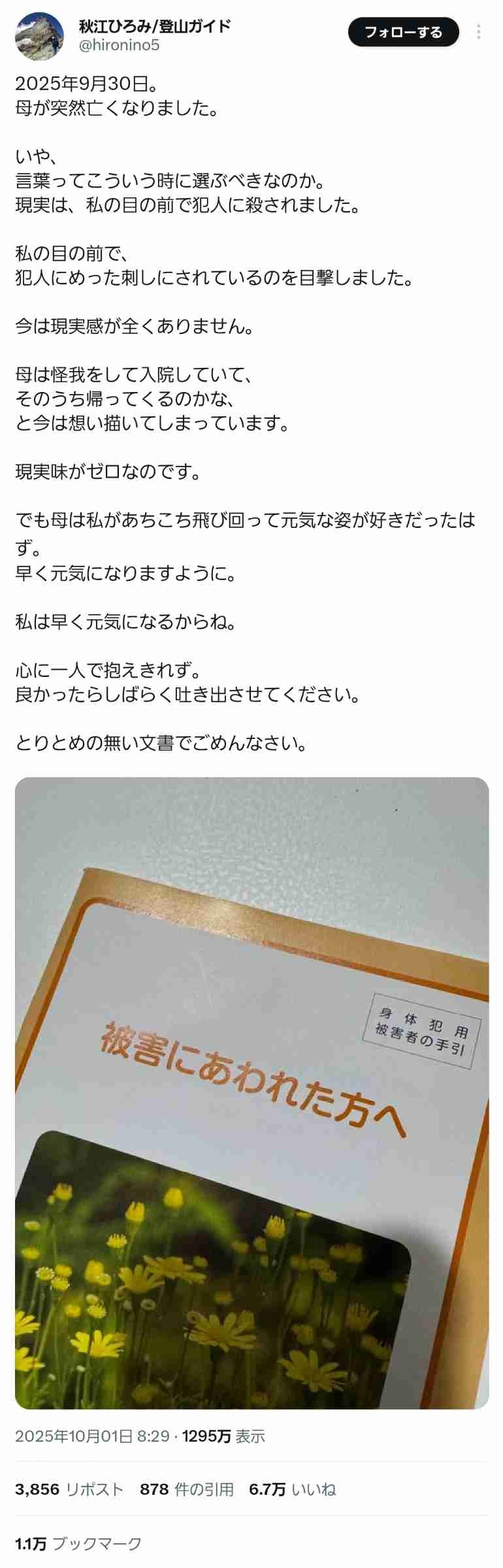 誰でもいいってのは特定の人物を目的にしてないってだけで成功率高いとこ狙うわな - 312 : 2025/10/02(木) 00:13:25.687 ID:2sVChl32L