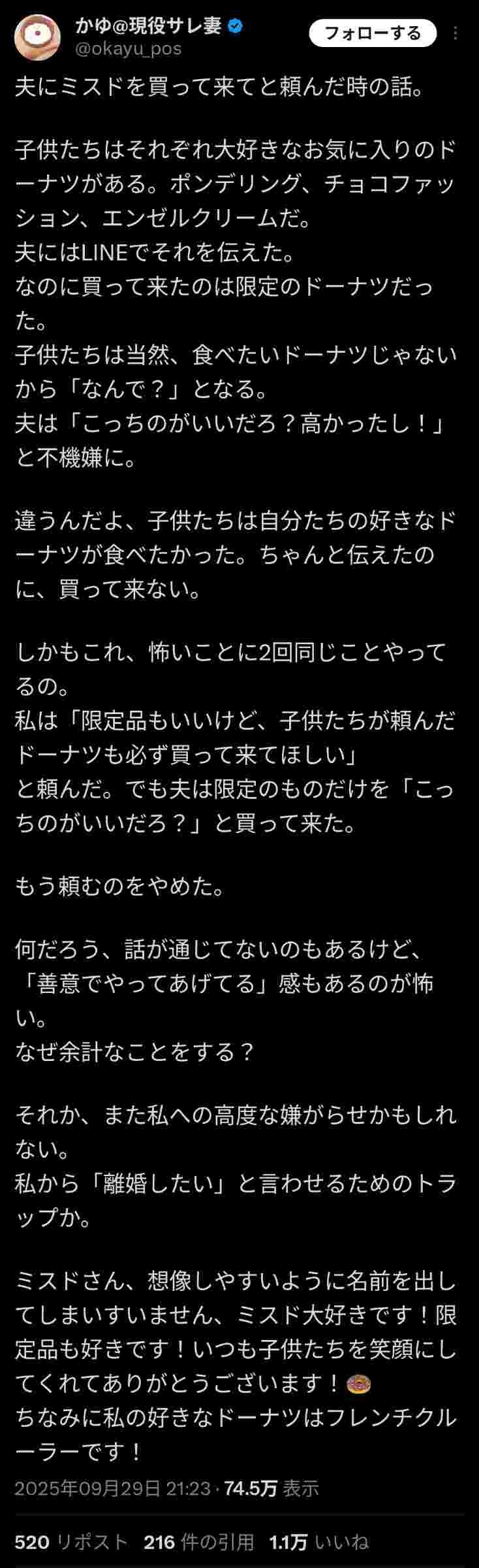 - よくドーナツごときにここまで怒れるなと思うよ