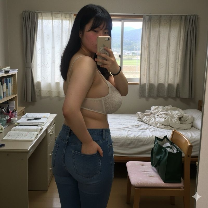 Geminiで爆乳地味娘がギャルに憧れてエッチなブラとジーパンを履いてみた爆乳地味娘を撮影した
