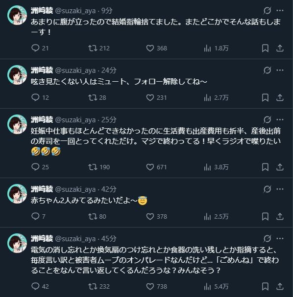てか家庭の話をXでやるのは一般人だけにしとけよって話なんだがな…
