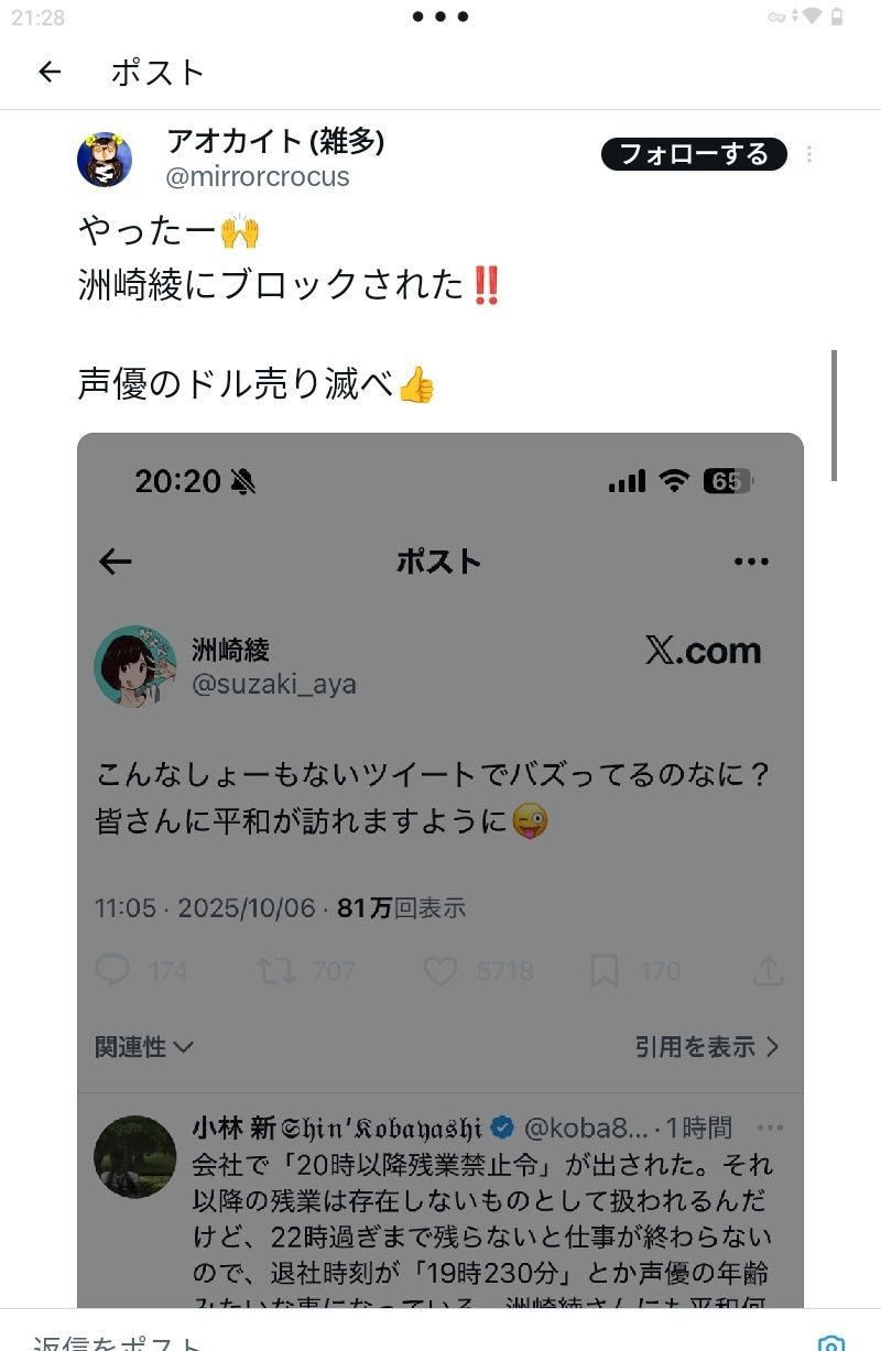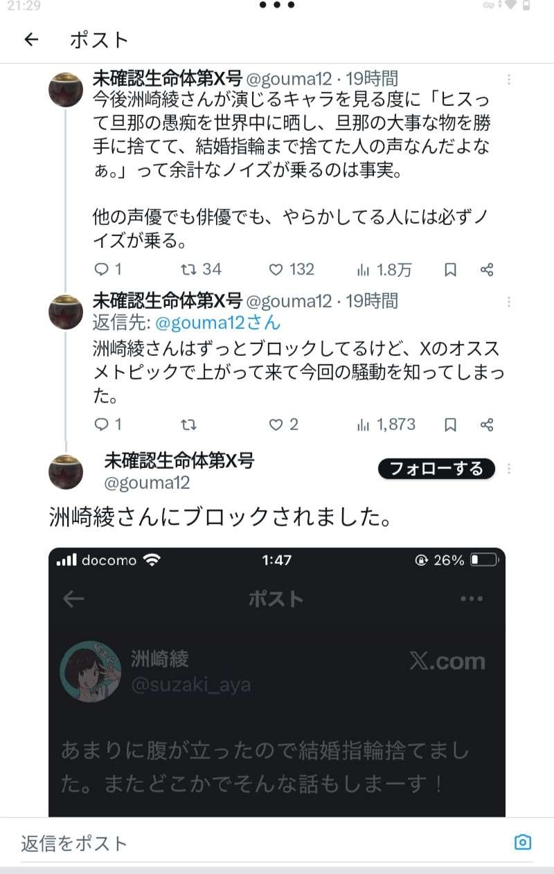 洲崎に関してはガチギレしてた声豚が多かったのが意外やったわ
