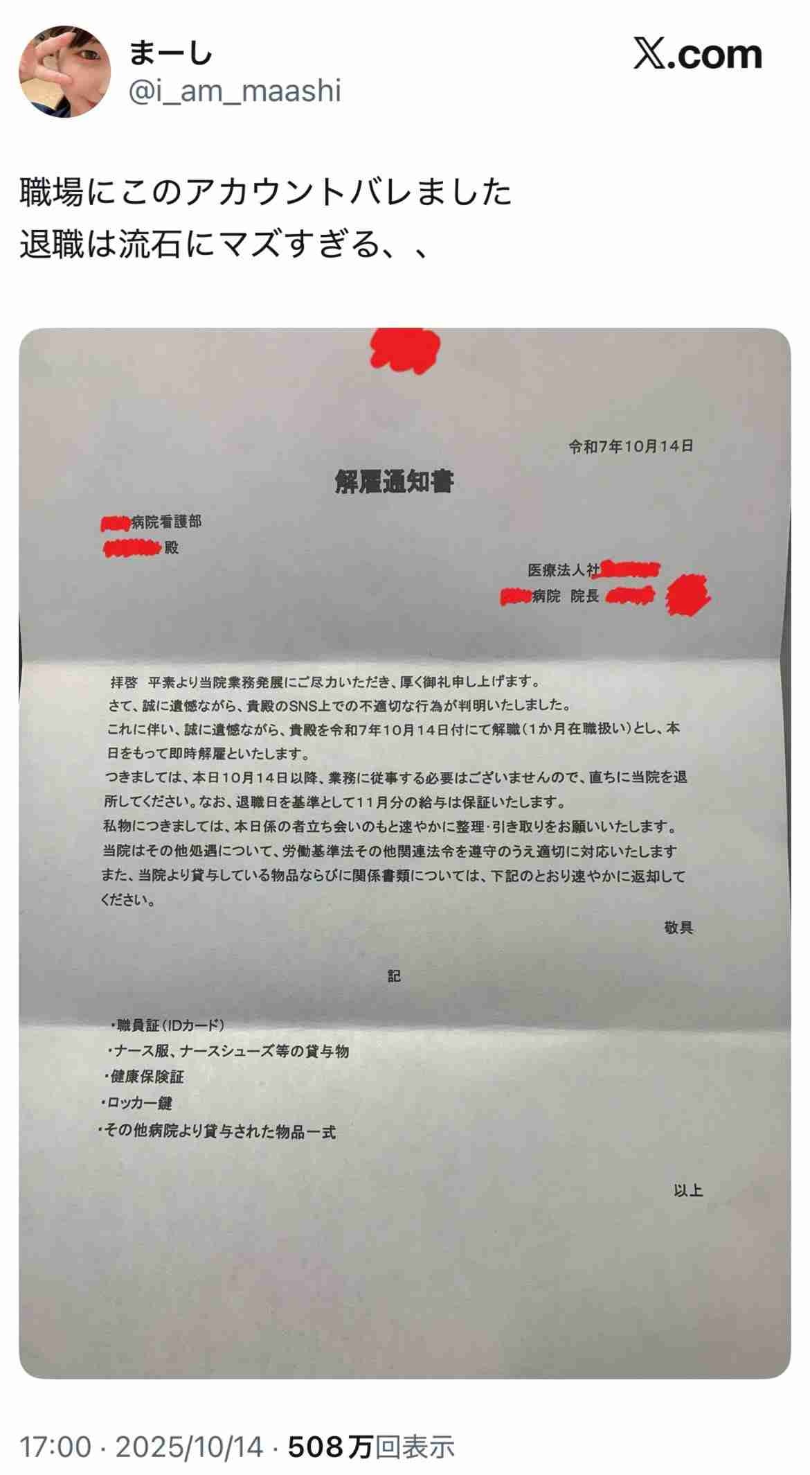 退職ならこんな文書付けないし貸与した物の返品書くらいだし - 36 : 2025/10/15(水) 09:17:41.435 ID:hsHBqny4O