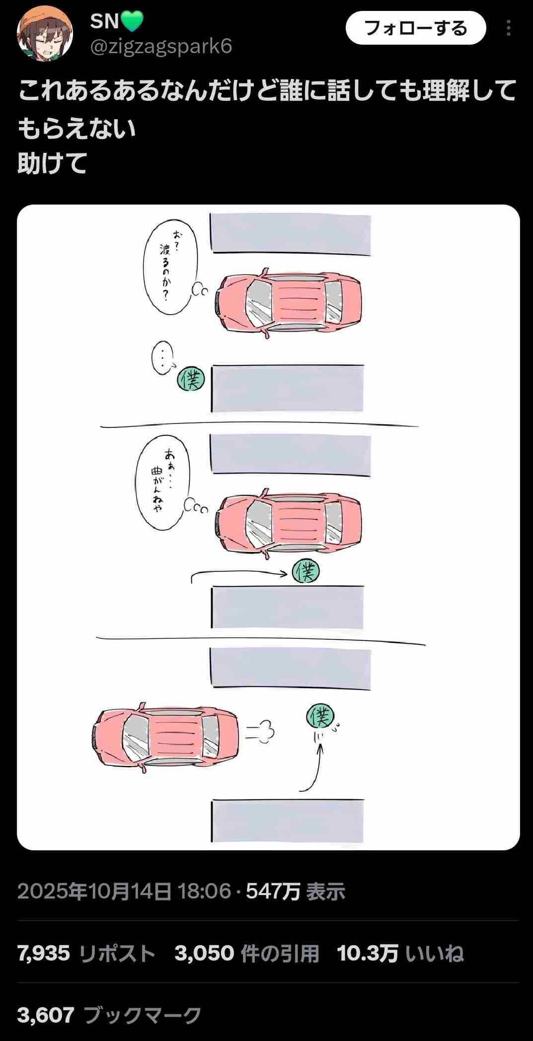 歩行者ってもう滅茶苦茶やるから基本後ろ回って死角行ったら絶対動かないようにしてる - 20 : 2025/10/15(水) 09:53:47.752 ID:5hrdOCNvQ