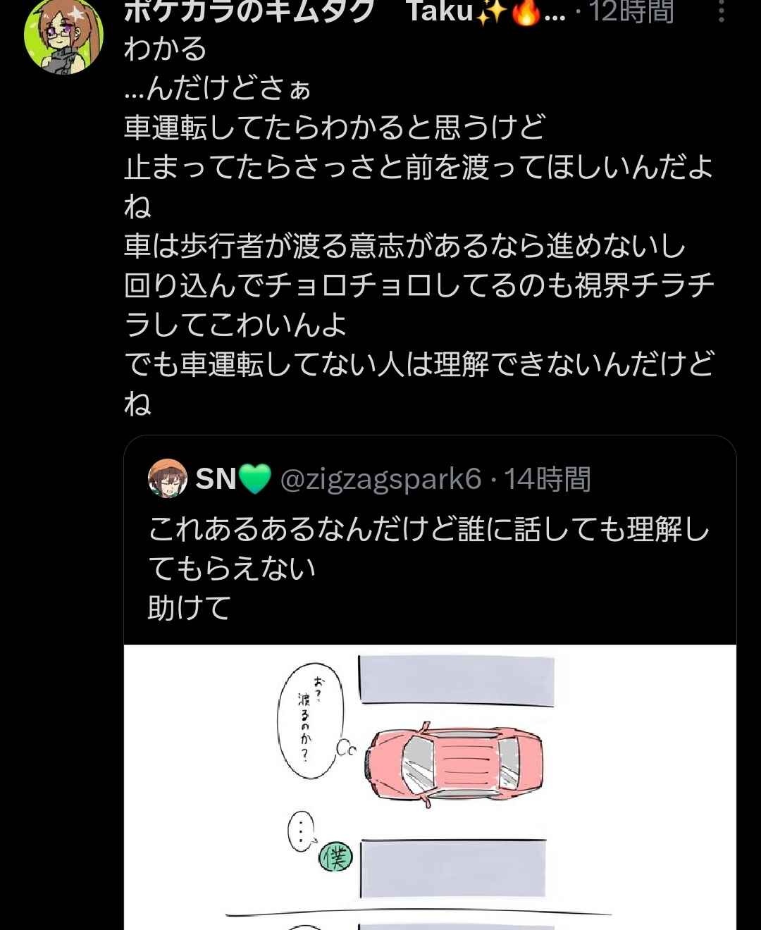 - でも歩行者が100優先やから車側に文句言う資格はないけどさ🥺
