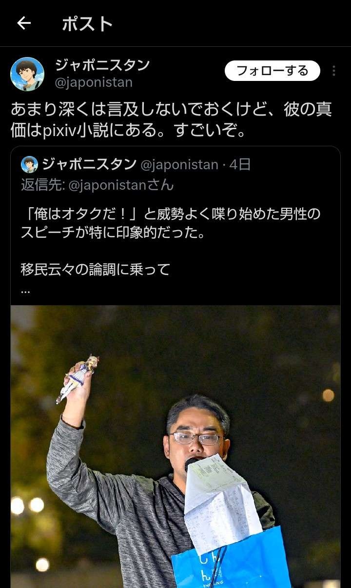 政府解体デモで「秋葉原にモスクが出来たらメイドさん達がレイプされる」と演説したオタクがpixivで書いた小説が見つかる