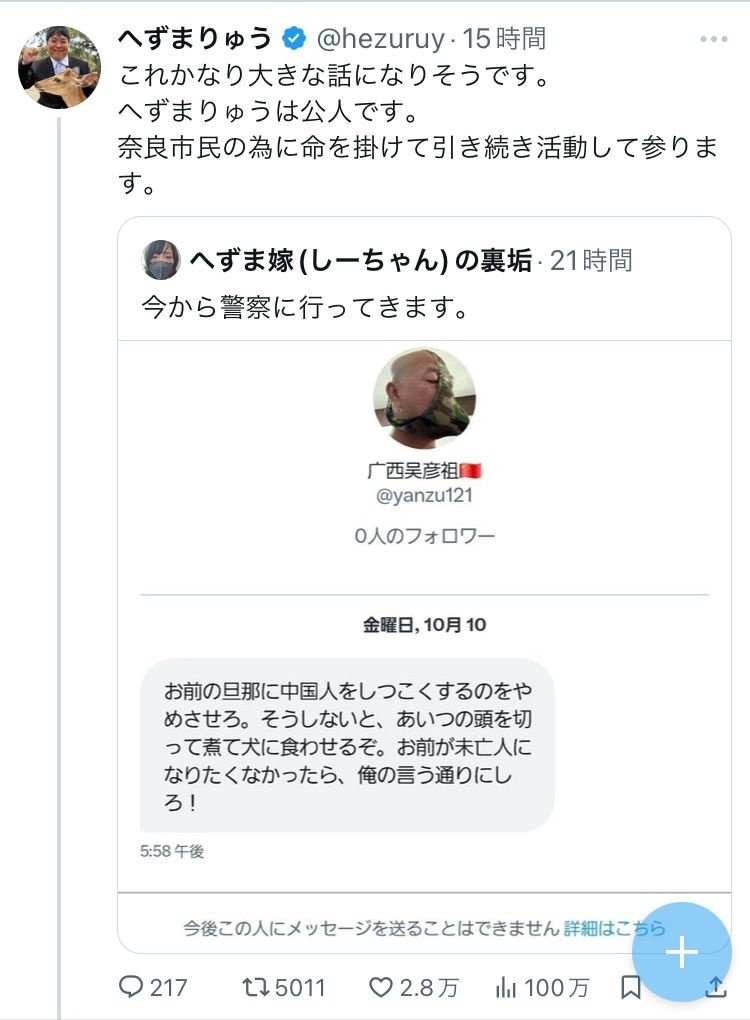 【心配】へずまりゅう夫妻、中国人に脅迫される