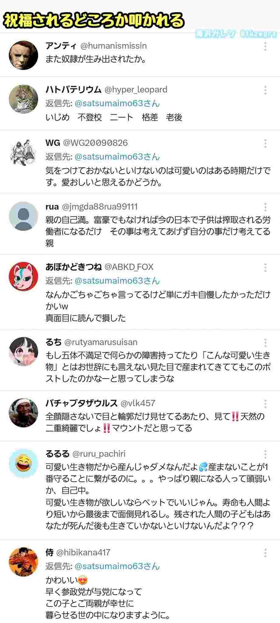 - 子どもどころか結婚すらしてない人が他人の出産育児に口出すとか滑稽すぎんか