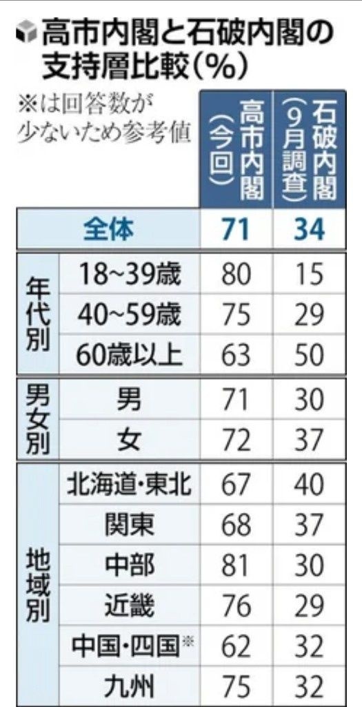 - Twitterのフェミニストみたいな奴らばっか見てると麻痺するけど高市の「初の女性総理」という要素は間違いなく高支持率に繋がってる