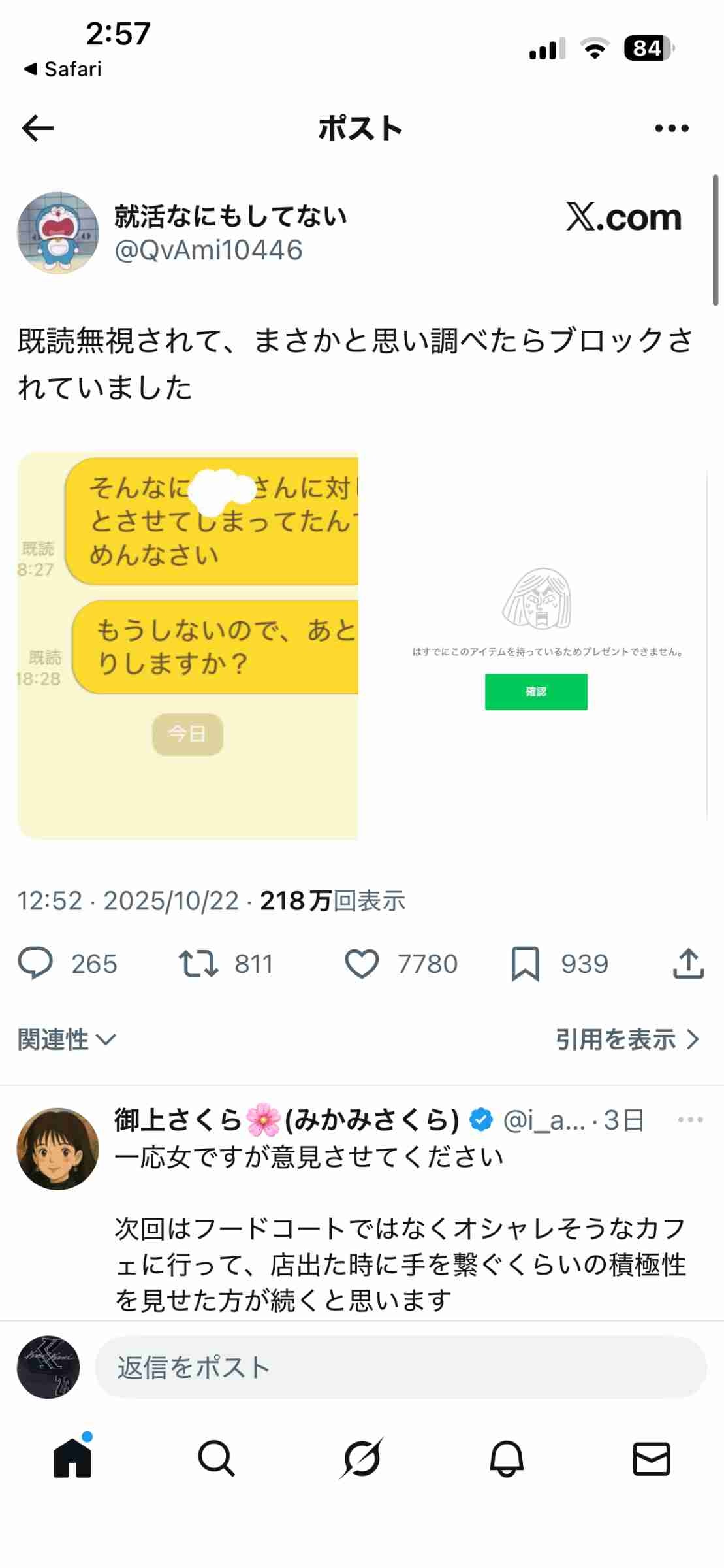 追いラインしてる時点でもう弱男丸出しや