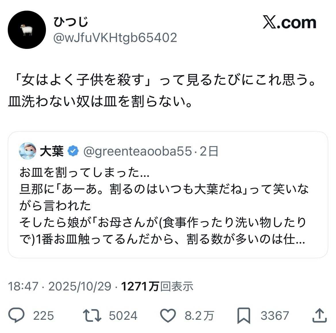 一緒に洗ってて割ったんだったら何時も洗ってるとか関係なくね? - 86 : 2025/10/31(金) 15:08:43.747 ID:1DM6sBfSk