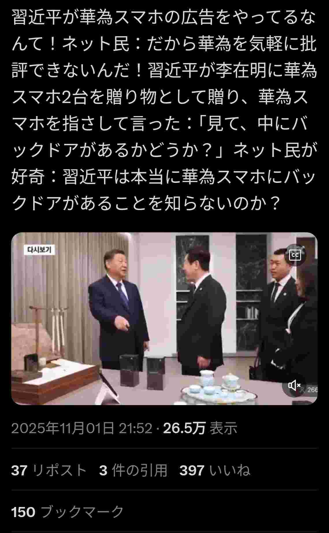 お前が最初に貼ったやつにはHuaweiってかいてあるからややこしい - 14 : 2025/11/02(日) 08:21:17.608 ID:YNyXjdr4u