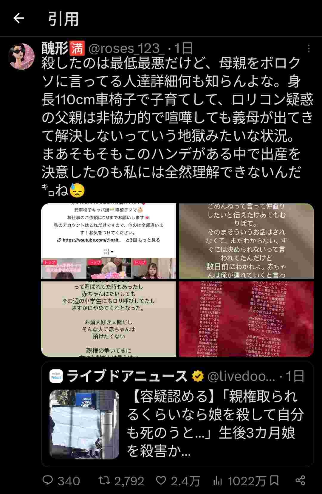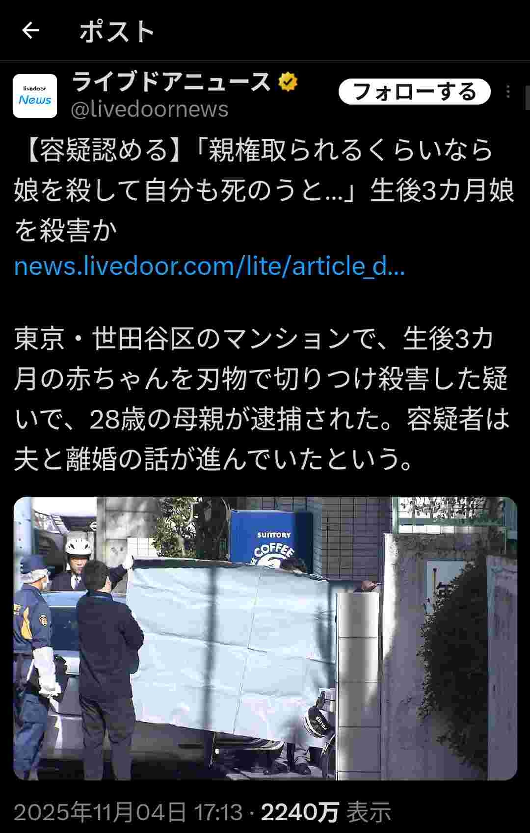 親権を奪われた腹いせに生後3ヶ月の乳児をメッタ刺しで殺した女性、「夫がロリコンかも」という設定になり許される
