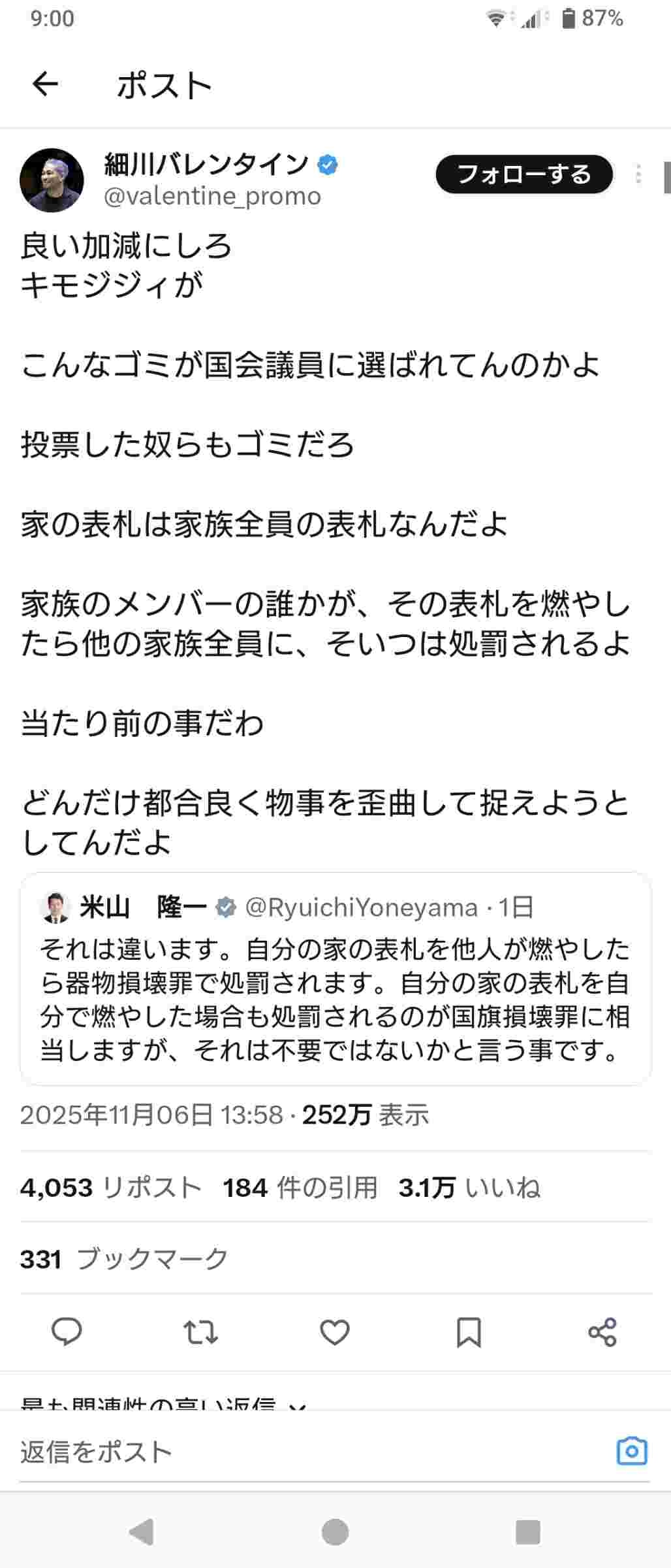 - 米山ってもうレスバ相手探して彷徨うネットの住民になってない?