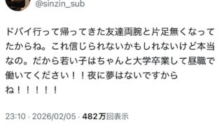 エッヂ 夜職女子「ドバイから帰ってきた友達、両腕無くなってた。」