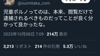 女さん「児童ポルノは捕まって当然でしょ」←5.3万いいねの発言者、ショタコンだと発覚してしまう