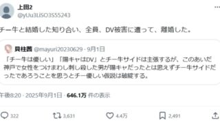 エッヂ 女「チー牛と結婚した知り合い、全員、DV被害に遭って、離婚した。」←5万いいね!