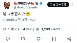エッヂ 「画像」中川翔子「エイプリルフールで嘘ついていいの午前中だけだから気をつけて!…🤥」