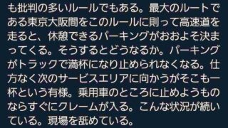 厚労省「トラック運転手は4時間走ったら30分やすめ!」👉パーキングがトラックで溢れて崩壊