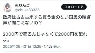【おこ女】Xの女の子、ブチ切れ「政府は米も買えない国民の喘ぎ声が聞こえないのか!」